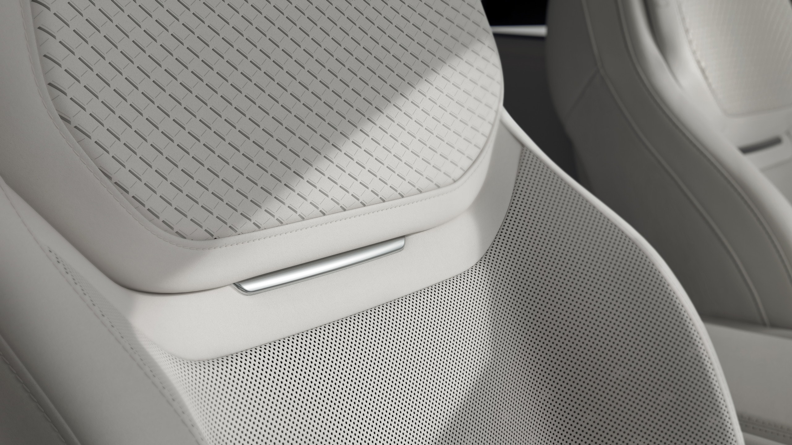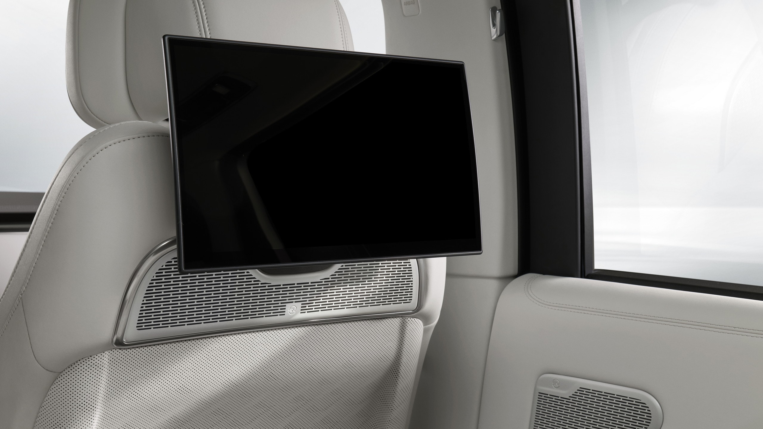 One system carries the name SV Electrostatic Sound. Instead of relying only on traditional speakers, Range Rover uses 21 thin-film transducers placed across winged headrests, seatbacks, headliner sections, and existing speaker positions. Five bass loudspeakers remain in the setup as support. Each transducer uses a membrane only one millimeter thick, mounted between two perforated metallic plates, where an audio signal passes through.
