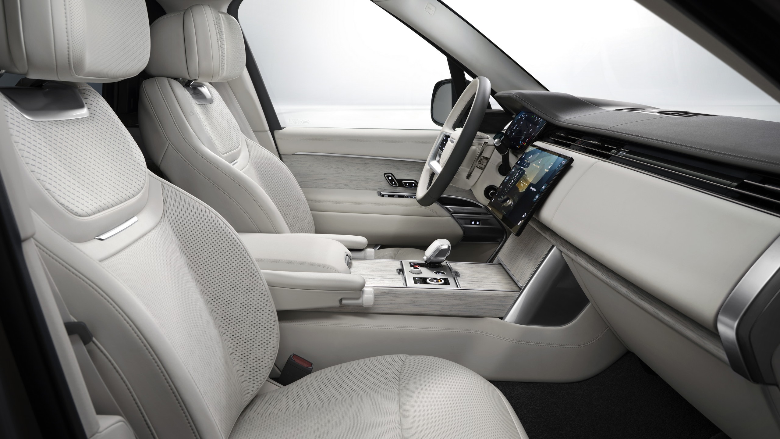 A second new feature sits lower in the cabin. Range Rover calls this one Sensory Haptic Floor. Four transducers mounted beneath the floor mats, one in each passenger footwell, create pulses through the floor surface in step with cabin audio. Drivers and passengers adjust both BASS and floor response through six selectable modes for each system.
