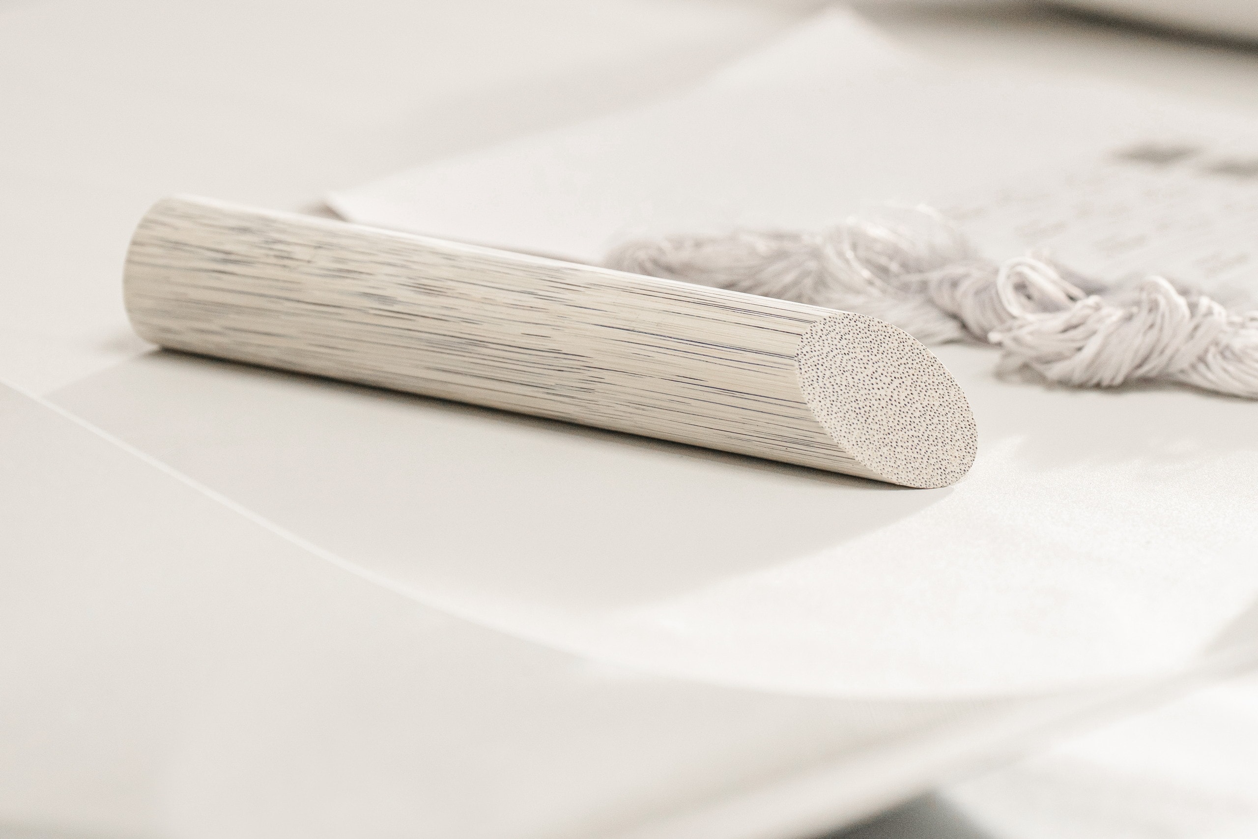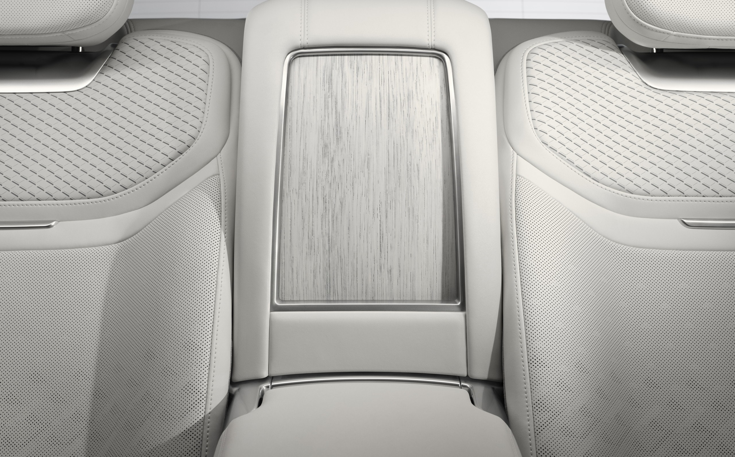 The interior follows a separate material theme. Light duo-tone Orchid White and Cinder Grey Ultrafabrics cover the cabin. Seats introduce a laser-crafted mosaic pattern for the first time. Bright-finished rattan palm veneer completes the trim surfaces.